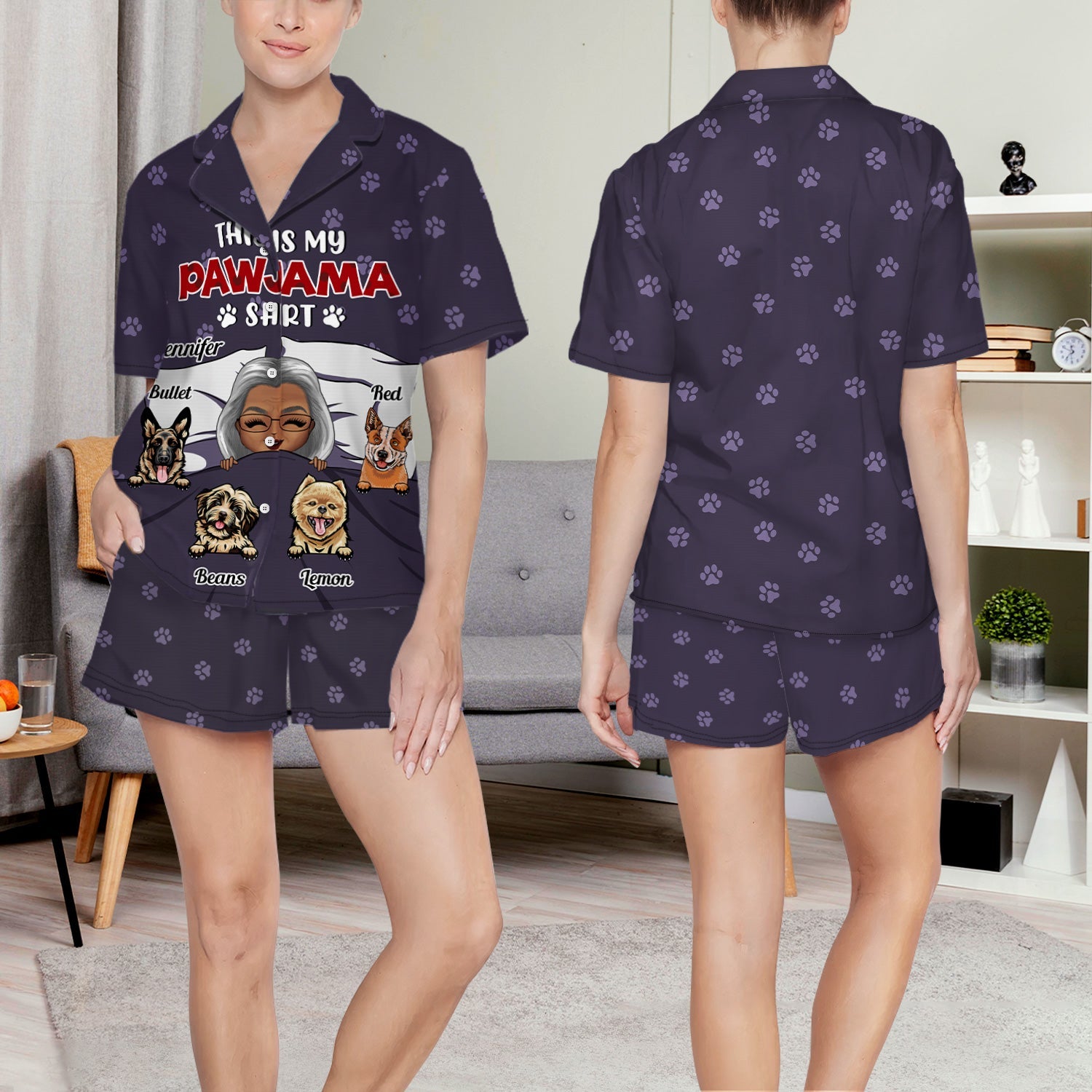 - Convenient and comfortable design - The pajama set includes a short-sleeved shirt and shorts. The tee features durable white buttons and a V-neck. The design can be customized in different colors and styles. Shorts two side pockets and an elastic waistband to ensure the perfect fit every time.