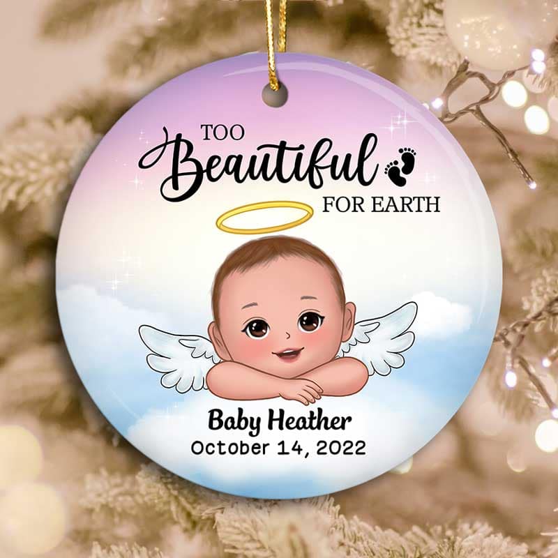 Too Beautiful For Earth Infant Loss Stillborn Miscarriage Keepsake Memorial Personalized Circle Ornament