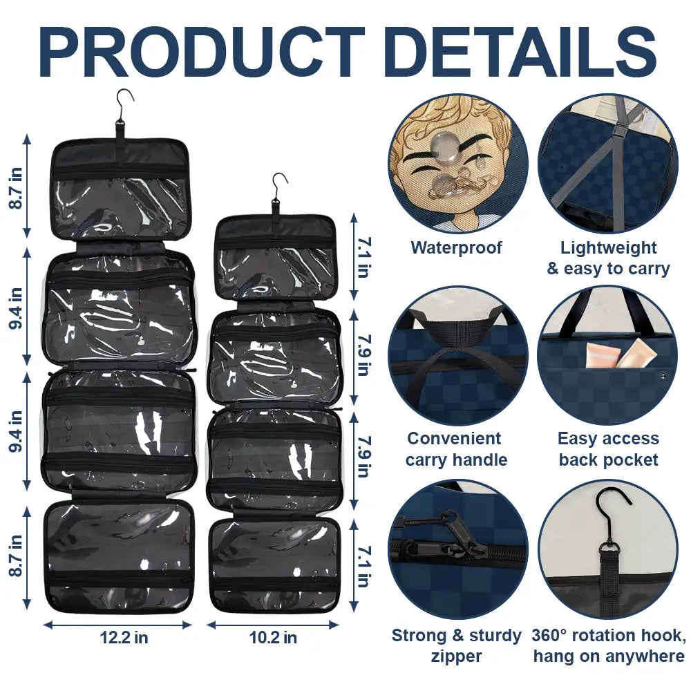 Whether you're embarking on a weekend getaway, a vacation, or a business trip, this toiletry bag is the perfect size to store all your toiletries, skincare products, and other personal items. It’s a practical yet joyful gift that makes packing easier and more stylish. Ideal for holidays, Thanksgiving, birthdays, anniversaries, or simply as a treat for any occasion, this bag will be appreciated by any traveler. Use it at home, in your suitcase, or even at the gym—it's a versatile accessory that adds a personal touch to every adventure!
