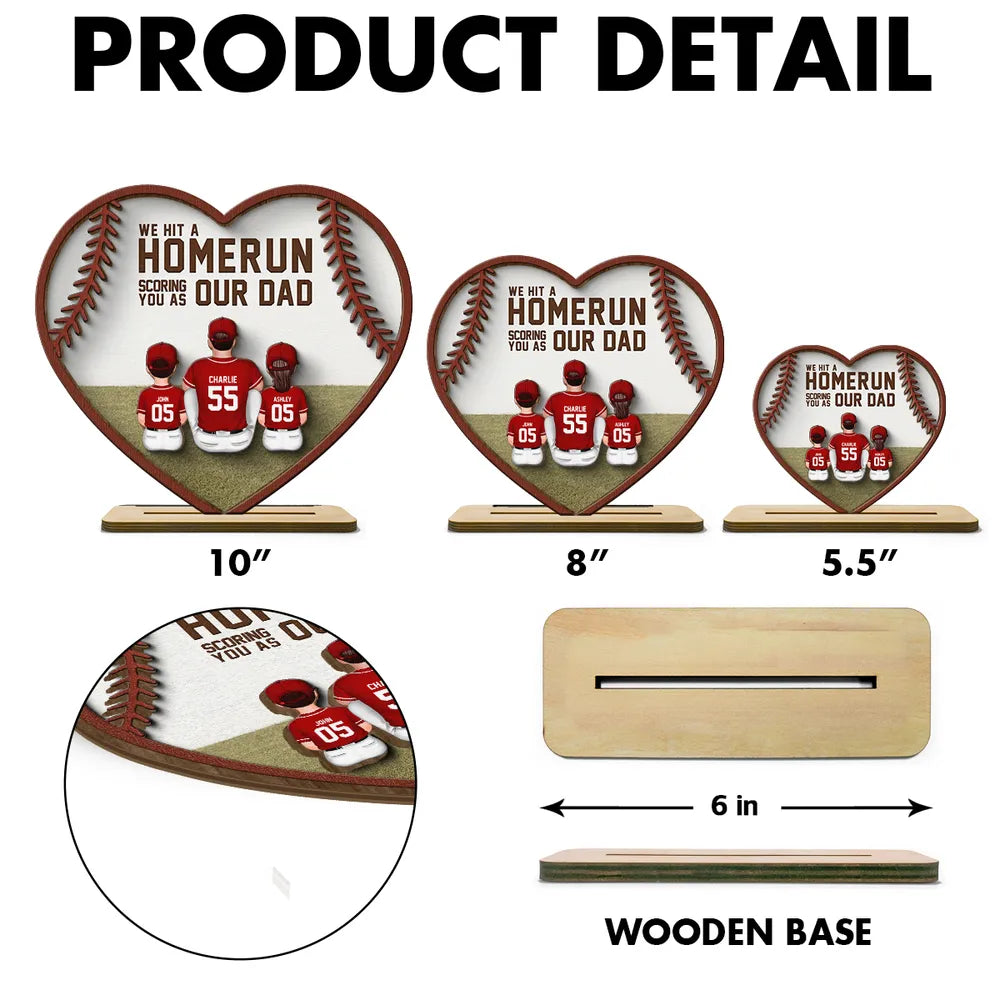 We Hit A Home Run Scoring You As Our Dad, Baseball Softball Dad Personalized 2-Layered Wooden Plaque