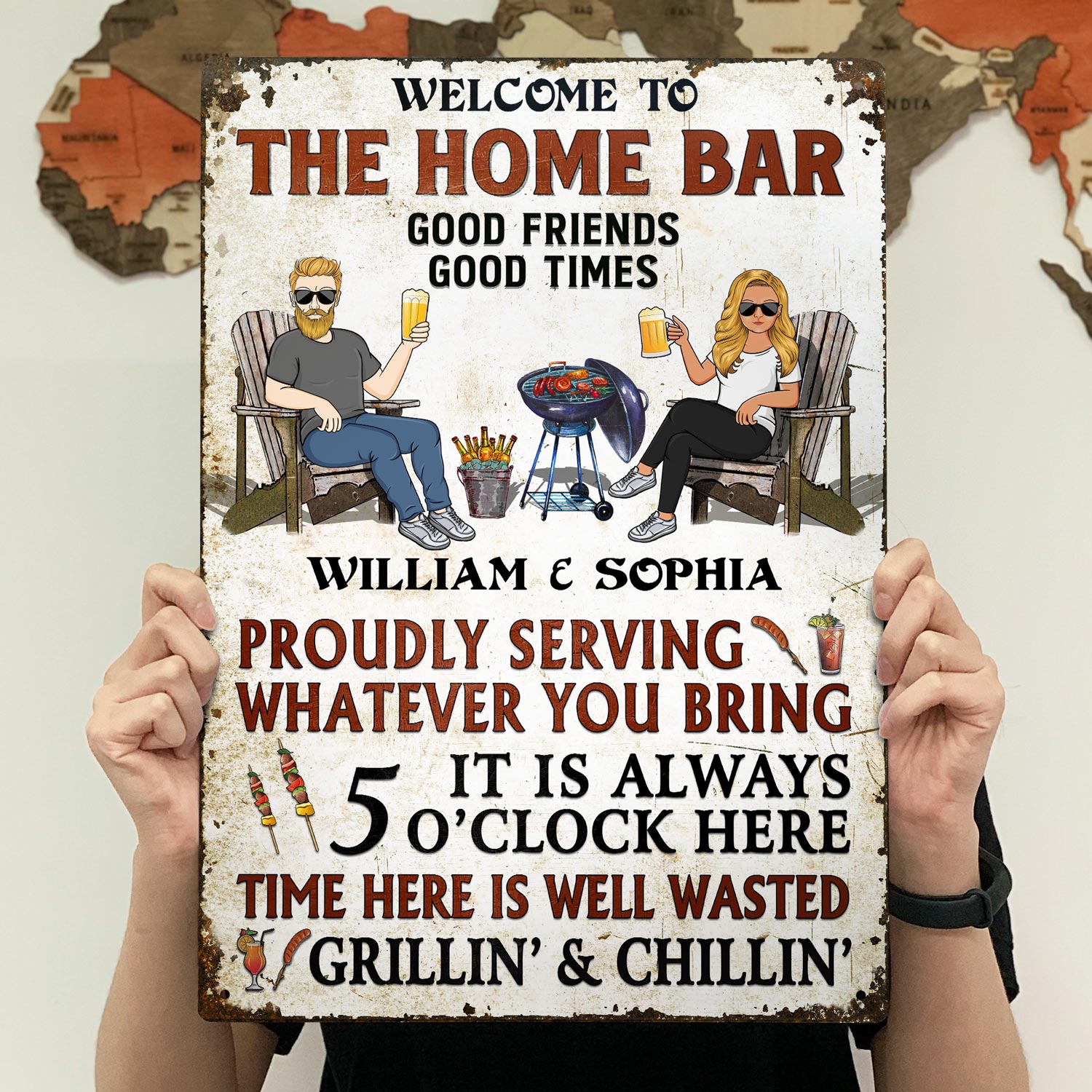 Welcome To Our Patio Proudly Serving Whatever You Bring Couple Husband Wife - Backyard Sign - Personalized Custom Classic Metal Signs