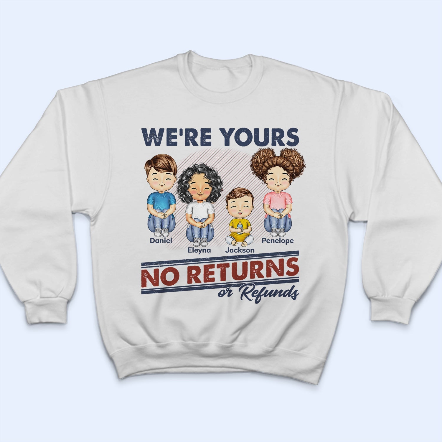 We're Yours No Returns Or Refunds - Birthday Gift For Mom, Dad, Grandpa, Grandma - Personalized Custom T Shirt