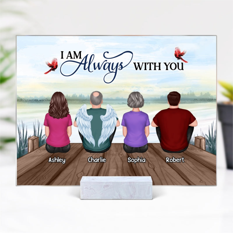 Whole Back View Family Sitting Remembrance Gift Memorial Lake Personalized Acrylic Plaque