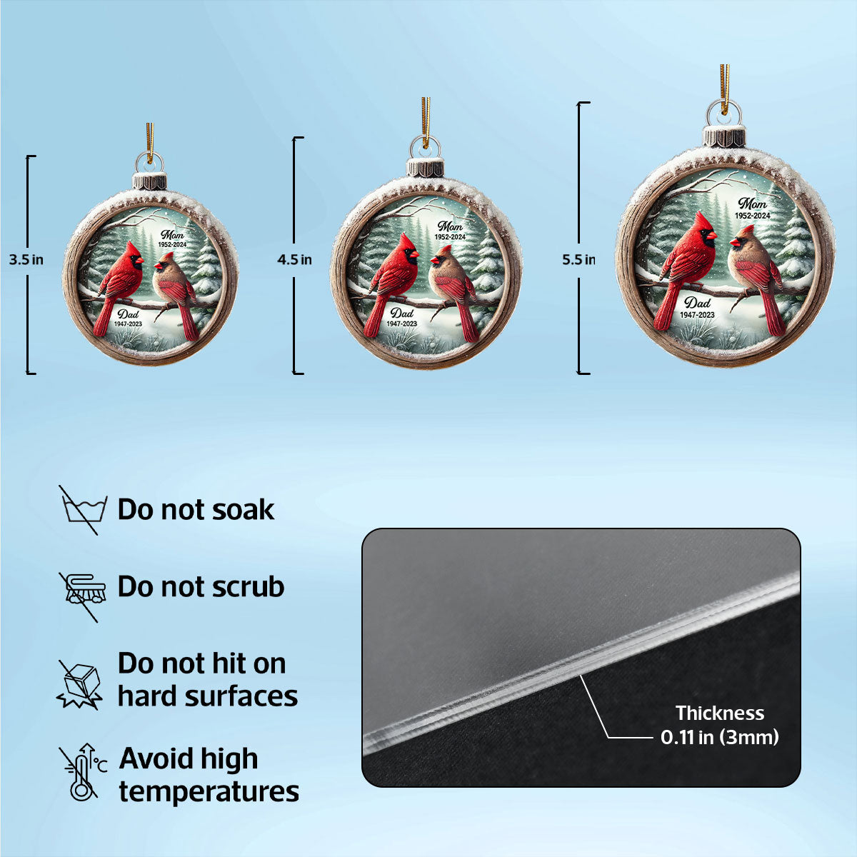 Winter Scene Memorial Cardinal Sympathy Gift Remembrance Keepsake 3D Effect Personalized Acrylic Ornament