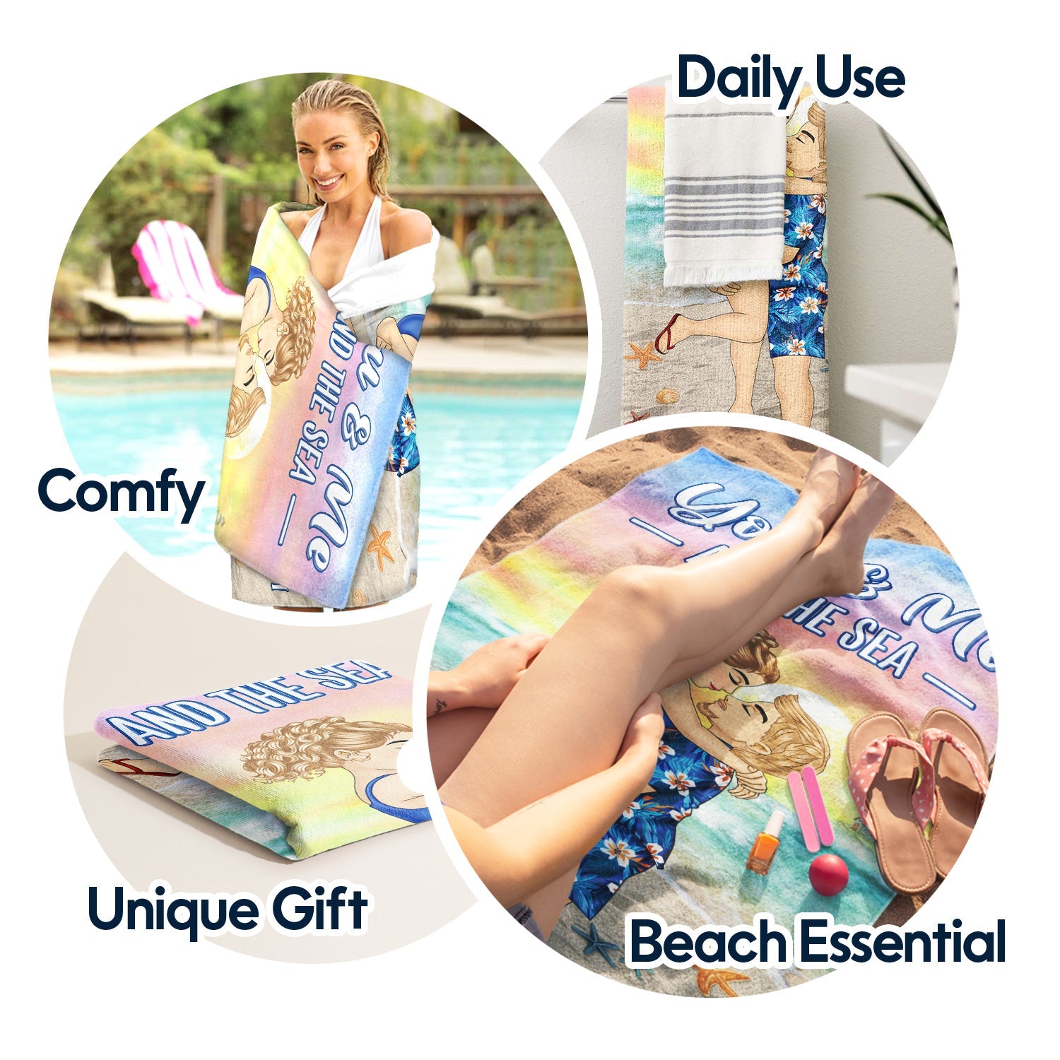 A Personalized Beach Towel, Bath Towel is perfect for relaxation plus staying the dry whole day. It is also a unique item for summertime, great for beach vacations, trips, reunions, pool parties and countless other events.