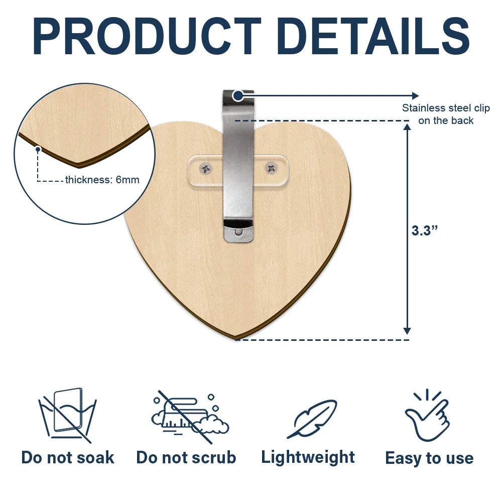 Crafted with care, this visor clip is both sentimental and functional. It easily attaches to any car visor, serving as a thoughtful token of love that provides comfort and encouragement during commutes, road trips, or daily errands.