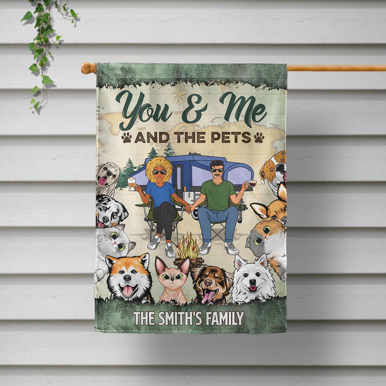 You & Me And The Dogs Cats - Gift For Pet, Camping Lovers, Campsite, Camping Decor, Couple, Family - Personalized Custom Flag