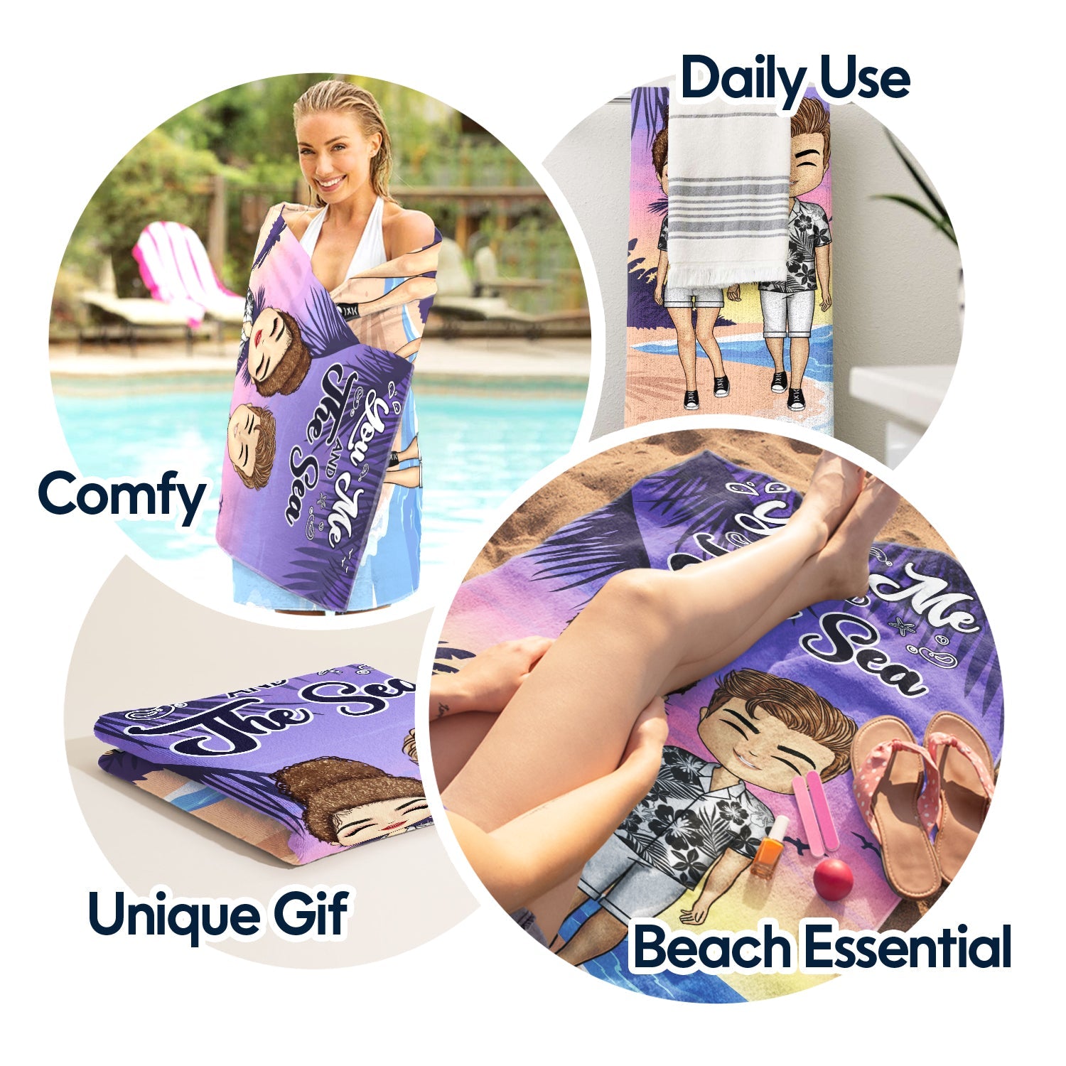 You Me And The Sea - Gift For Couple - Personalized Custom Beach Towel
